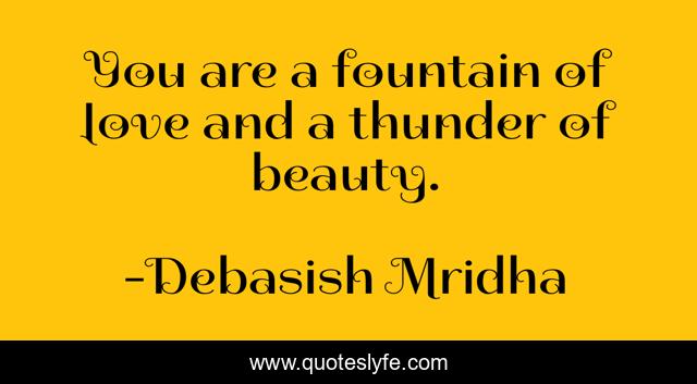 This page presents the quote "You are a fountain of love and a thunder of beauty.". Author of this quote is Debasish Mridha. This quote is about life, love, knowledge, inspirational, intelligence, philosophy, wisdom, quotes, affection,.