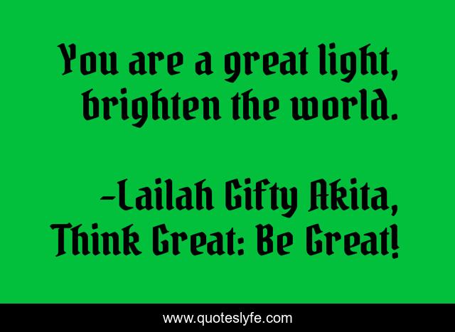 "Lailah Gifty Akita, Think Great: Be Great! Quotes." Quoteslyfe.com, 2025. Mon. 08 Dec. 2025. <https://www.quoteslyfe.com/quote/You-are-a-great-light-brighten-the-118602>.