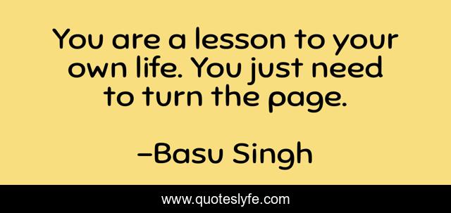 This page presents the quote "You are a lesson to your own life. You just need to turn the page.". Author of this quote is Basu Singh. This quote is about life, life-lesson, quote, best-ever, quotes, amazing, inspirational, quote-of-the-day, enthusiasm,.