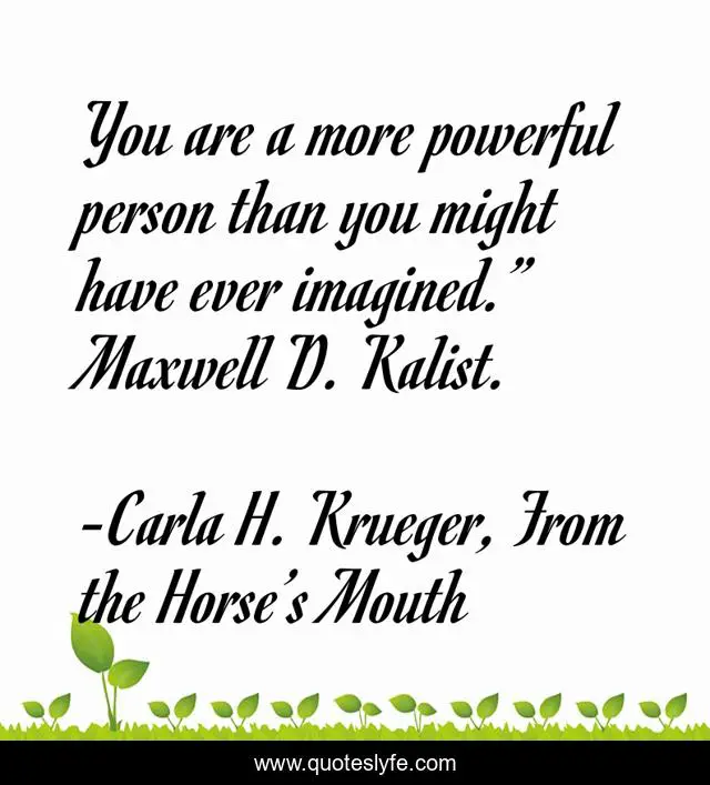 "Carla H. Krueger, From the Horse’s Mouth Quotes." Quoteslyfe.com, 2025. Sun. 07 Dec. 2025. <https://www.quoteslyfe.com/quote/You-are-a-more-powerful-person-than-198226>.