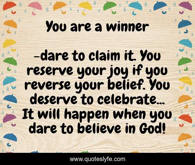 "dare to claim it. You reserve your joy if you reverse your belief. You deserve to celebrate... It will happen when you dare to believe in God! Quotes." Quoteslyfe.com, 2025. Mon. 08 Dec. 2025. <https://www.quoteslyfe.com/quote/You-are-a-winner-111370>.