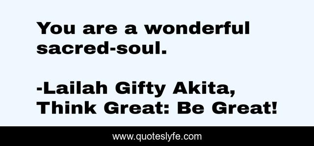 "Lailah Gifty Akita, Think Great: Be Great! Quotes." Quoteslyfe.com, 2025. Sat. 06 Dec. 2025. <https://www.quoteslyfe.com/quote/You-are-a-wonderful-sacred-soul-78373>.