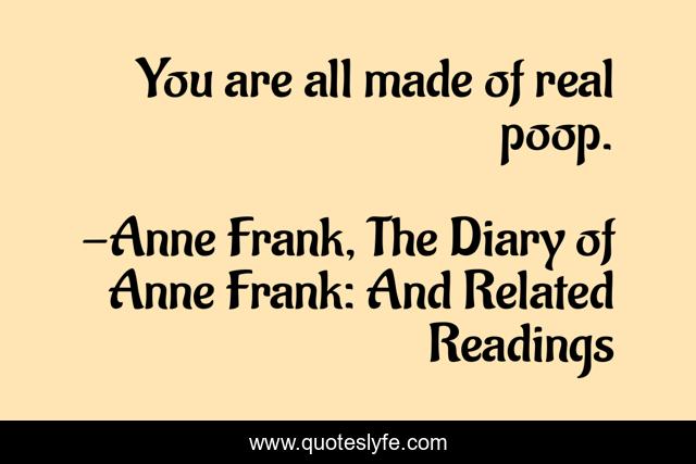 "Anne Frank, The Diary of Anne Frank: And Related Readings Quotes." Quoteslyfe.com, 2025. Fri. 05 Dec. 2025. <https://www.quoteslyfe.com/quote/You-are-all-made-of-real-poop-163636>.
