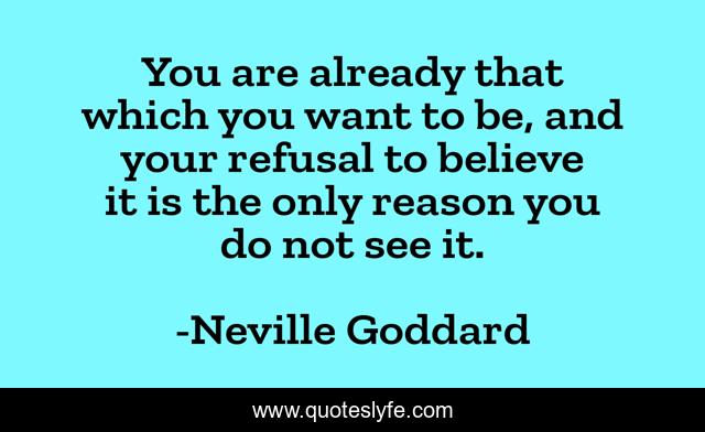 This page presents the quote "You are already that which you want to be, and your refusal to believe it is the only reason you do not see it.". Author of this quote is Neville Goddard. This quote is about want-to-be, reason, see-it, refusal,.