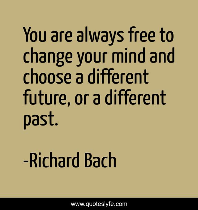 This page presents the quote "You are always free to change your mind and choose a different future, or a different past.". Author of this quote is Richard Bach. This quote is about past, future, change,.