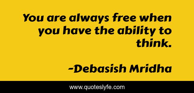 This page presents the quote "You are always free when you have the ability to think.". Author of this quote is Debasish Mridha. This quote is about you-are-always-free, ability-to-think, philosophy, debasish-mridha, free, quotes, inspirational, enthusiasm, debasish-mridha-m-d,.