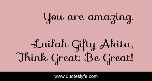"Lailah Gifty Akita, Think Great: Be Great! Quotes." Quoteslyfe.com, 2025. Tue. 09 Dec. 2025. <https://www.quoteslyfe.com/quote/You-are-amazing-165334>.