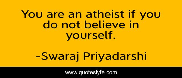 This page presents the quote "You are an atheist if you do not believe in yourself.". Author of this quote is Swaraj Priyadarshi. This quote is about life, belief, self-belief, yourself, inspirational, enthusiasm, believe,.