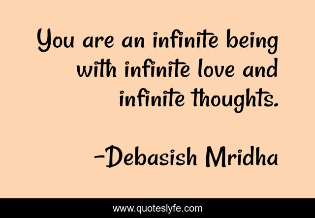 This page presents the quote "You are an infinite being with infinite love and infinite thoughts.". Author of this quote is Debasish Mridha. This quote is about debasish-mridha, philosophy, infinite-love, quotes, inspirational, enthusiasm, infinite-thoughts, debasish-mridha-m-d,.