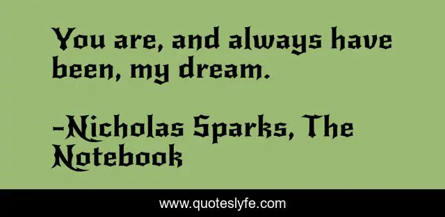 This page presents the quote "You are, and always have been, my dream.". Author of this quote is Nicholas Sparks, The Notebook. This quote is about love, affection,.