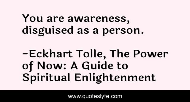 "Eckhart Tolle, The Power of Now: A Guide to Spiritual Enlightenment Quotes." Quoteslyfe.com, 2025. Mon. 08 Dec. 2025. <https://www.quoteslyfe.com/quote/You-are-awareness-disguised-as-a-person-121494>.
