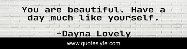 "Dayna Lovely Quotes." Quoteslyfe.com, 2025. Fri. 05 Dec. 2025. <https://www.quoteslyfe.com/quote/You-are-beautiful-Have-a-day-much-95322>.