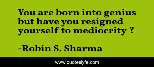 This page presents the quote "You are born into genius but have you resigned yourself to mediocrity ?". Author of this quote is Robin S. Sharma. This quote is about inspirational-attitude, enthusiasm, inspirational,.
