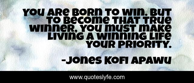 This page presents the quote "You are born to win. But to become that true winner, you must make living a winning life your priority.". Author of this quote is Jones Kofi Apawu. This quote is about positivity, optimism, winning,.