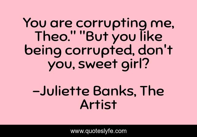 This page presents the quote "You are corrupting me, Theo." "But you like being corrupted, don't you, sweet girl?". Author of this quote is Juliette Banks, The Artist. This quote is about erotic-fiction, erotic-romance,.