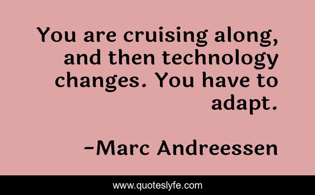 This page presents the quote "You are cruising along, and then technology changes. You have to adapt.". Author of this quote is Marc Andreessen. This quote is about changes, adapt,.
