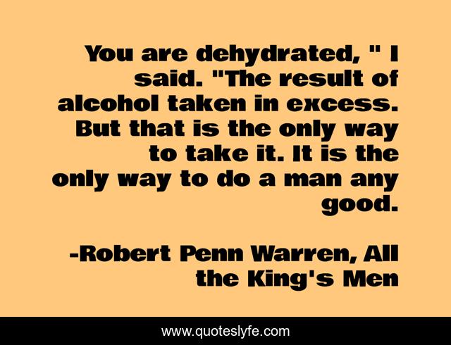This page presents the quote "You are dehydrated, " I said. "The result of alcohol taken in excess. But that is the only way to take it. It is the only way to do a man any good.". Author of this quote is Robert Penn Warren, All the King's Men. .