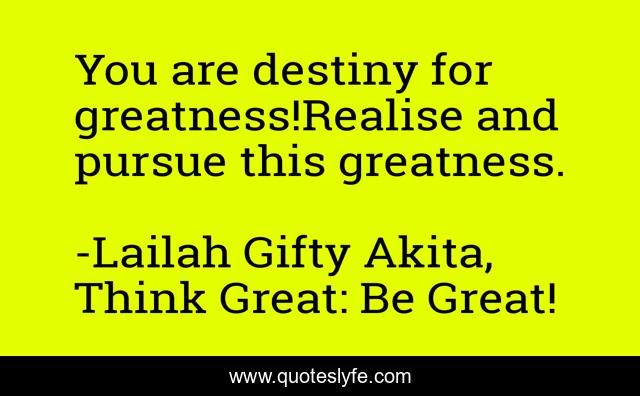 "Lailah Gifty Akita, Think Great: Be Great! Quotes." Quoteslyfe.com, 2025. Sat. 06 Dec. 2025. <https://www.quoteslyfe.com/quote/You-are-destiny-for-greatness-Realise-and-84310>.