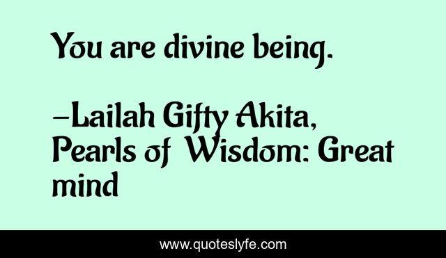 "Lailah Gifty Akita, Pearls of Wisdom: Great mind Quotes." Quoteslyfe.com, 2025. Sat. 06 Dec. 2025. <https://www.quoteslyfe.com/quote/You-are-divine-being-153756>.