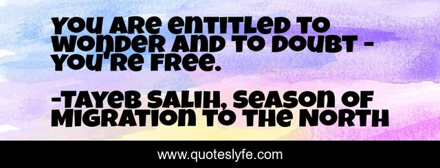 This page presents the quote "You are entitled to wonder and to doubt - you're free.". Author of this quote is Tayeb Salih, Season of Migration to the North. .