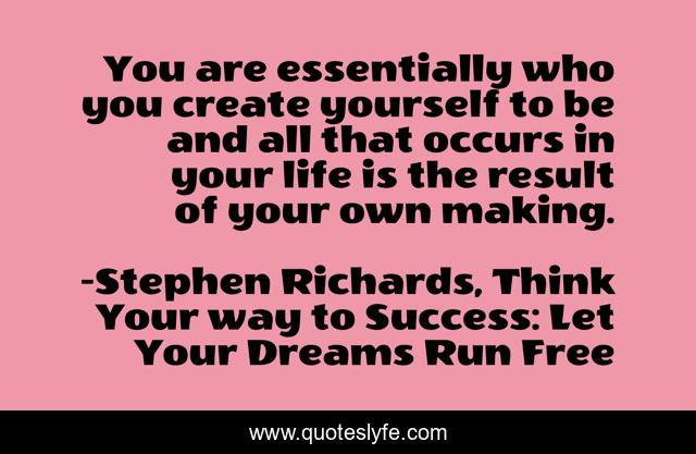 "Stephen Richards, Think Your way to Success: Let Your Dreams Run Free Quotes." Quoteslyfe.com, 2025. Sat. 06 Dec. 2025. <https://www.quoteslyfe.com/quote/You-are-essentially-who-you-create-yourself-35952>.