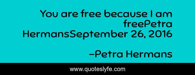 This page presents the quote "You are free because I am freePetra HermansSeptember 26, 2016". Author of this quote is Petra Hermans. .