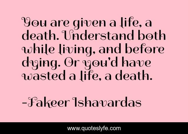 "Fakeer Ishavardas Quotes." Quoteslyfe.com, 2025. Sat. 06 Dec. 2025. <https://www.quoteslyfe.com/quote/You-are-given-a-life-a-death-115822>.