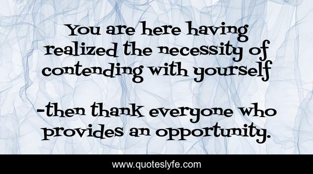 "then thank everyone who provides an opportunity. Quotes." Quoteslyfe.com, 2025. Sat. 06 Dec. 2025. <https://www.quoteslyfe.com/quote/You-are-here-having-realized-the-necessity-121823>.