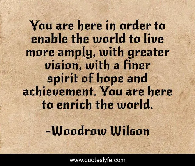 "Woodrow Wilson Quotes." Quoteslyfe.com, 2025. Fri. 05 Dec. 2025. <https://www.quoteslyfe.com/quote/You-are-here-in-order-to-enable-46049>.