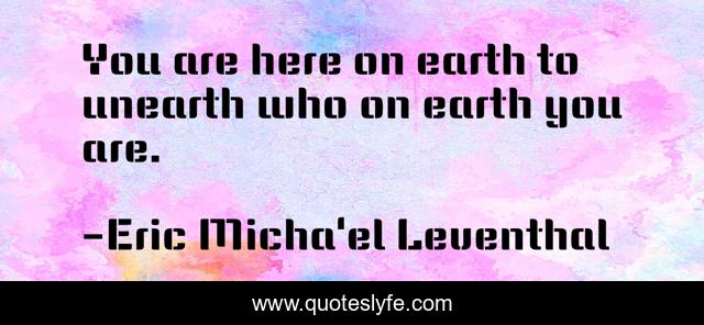 "Eric Micha'el Leventhal Quotes." Quoteslyfe.com, 2025. Mon. 08 Dec. 2025. <https://www.quoteslyfe.com/quote/You-are-here-on-earth-to-unearth-141938>.