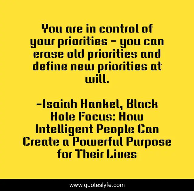 "Isaiah Hankel, Black Hole Focus: How Intelligent People Can Create a Powerful Purpose for Their Lives Quotes." Quoteslyfe.com, 2025. Fri. 05 Dec. 2025. <https://www.quoteslyfe.com/quote/You-are-in-control-of-your-priorities-235656>.