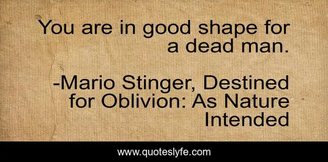 "Mario Stinger, Destined for Oblivion: As Nature Intended Quotes." Quoteslyfe.com, 2025. Fri. 05 Dec. 2025. <https://www.quoteslyfe.com/quote/You-are-in-good-shape-for-a-177139>.
