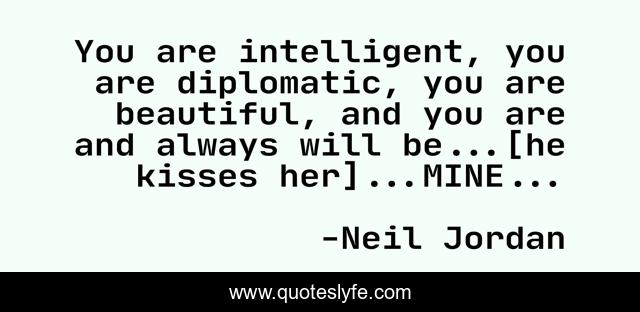 This page presents the quote "You are intelligent, you are diplomatic, you are beautiful, and you are and always will be...[he kisses her]...MINE...". Author of this quote is Neil Jordan. This quote is about historical-fiction, historical-romance,.