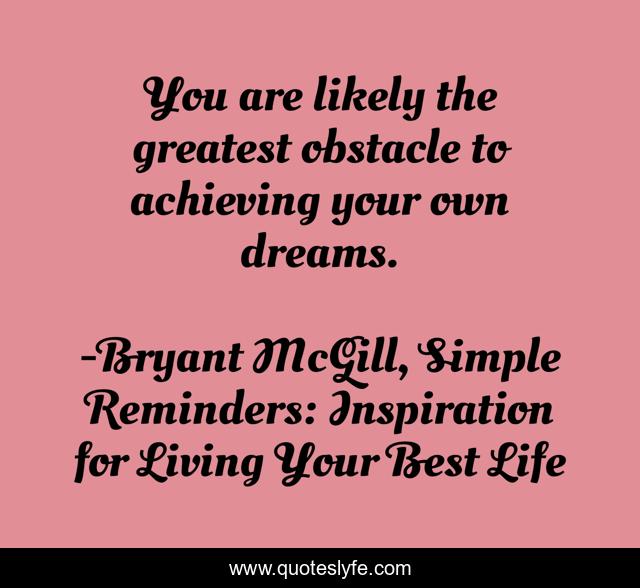 "Bryant McGill, Simple Reminders: Inspiration for Living Your Best Life Quotes." Quoteslyfe.com, 2025. Fri. 05 Dec. 2025. <https://www.quoteslyfe.com/quote/You-are-likely-the-greatest-obstacle-to-165797>.
