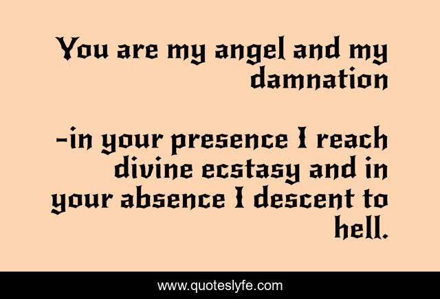 "in your presence I reach divine ecstasy and in your absence I descent to hell. Quotes." Quoteslyfe.com, 2025. Sat. 06 Dec. 2025. <https://www.quoteslyfe.com/quote/You-are-my-angel-and-my-damnation-257702>.