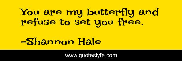 This page presents the quote "You are my butterfly and refuse to set you free.". Author of this quote is Shannon Hale. This quote is about freedom, love, affection,.
