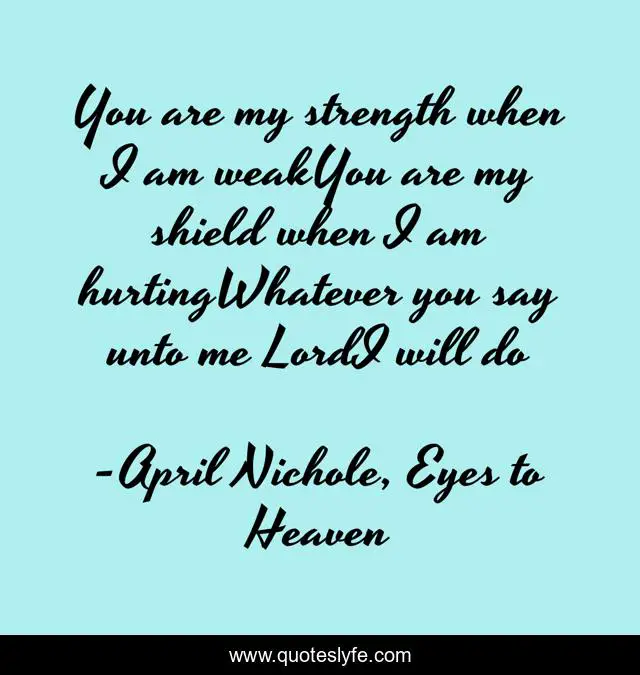 This page presents the quote "You are my strength when I am weakYou are my shield when I am hurtingWhatever you say unto me LordI will do". Author of this quote is April Nichole, Eyes to Heaven. This quote is about faith, religious, poetry,.