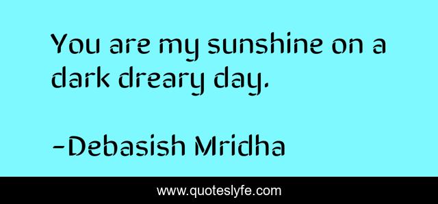This page presents the quote "You are my sunshine on a dark dreary day.". Author of this quote is Debasish Mridha. This quote is about philosophy, sunshine, debasish-mridha, dreary-day, quotes, you-are-my-sunshine, inspirational, enthusiasm, debasish-mridha-m-d,.