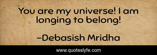 This page presents the quote "You are my universe! I am longing to belong!". Author of this quote is Debasish Mridha. This quote is about love, universe, philosophy, debasish-mridha, quotes, longing-to-belong, inspirational, enthusiasm, debasish-mridha-m-d,.