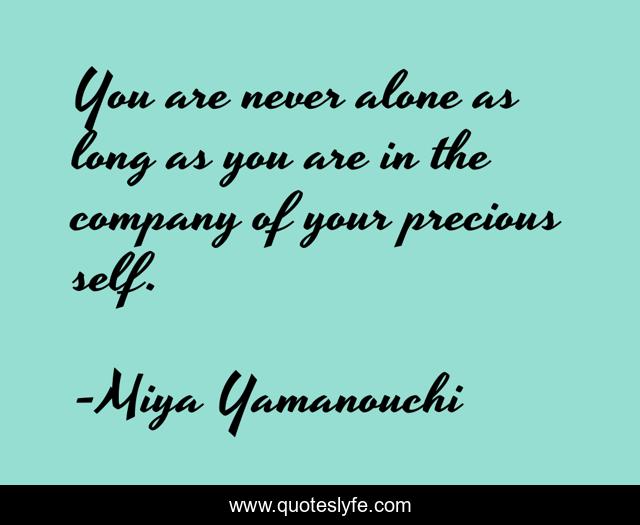 This page presents the quote "You are never alone as long as you are in the company of your precious self.". Author of this quote is Miya Yamanouchi. This quote is about self-love, miya-yamanouchi, self, never-alone, selflove, quotes-about-not-being-alone, you-are-precious, precious, the-princess,.