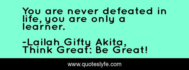 "Lailah Gifty Akita, Think Great: Be Great! Quotes." Quoteslyfe.com, 2025. Fri. 05 Dec. 2025. <https://www.quoteslyfe.com/quote/You-are-never-defeated-in-life-you-117147>.