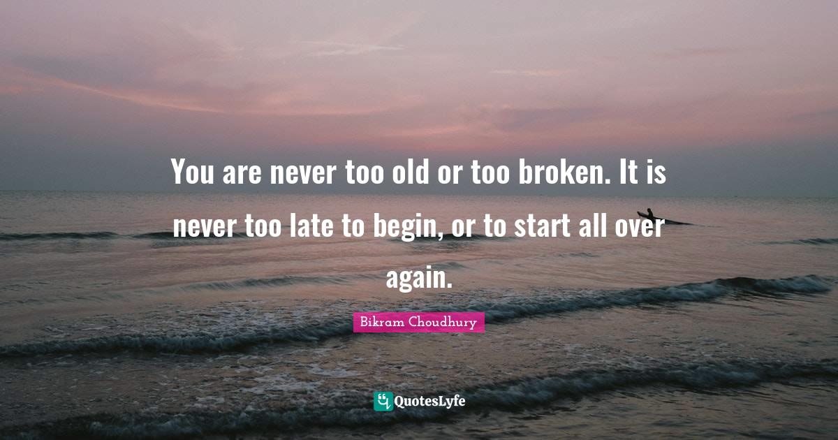 You are never too old or too broken. It is never too late to begin, or to start all over again.