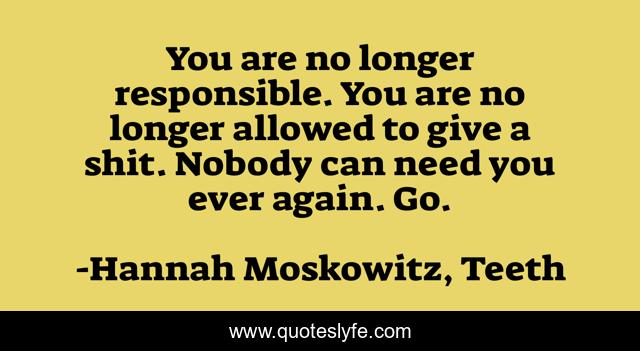 "Hannah Moskowitz, Teeth Quotes." Quoteslyfe.com, 2025. Fri. 05 Dec. 2025. <https://www.quoteslyfe.com/quote/You-are-no-longer-responsible-You-are-55010>.