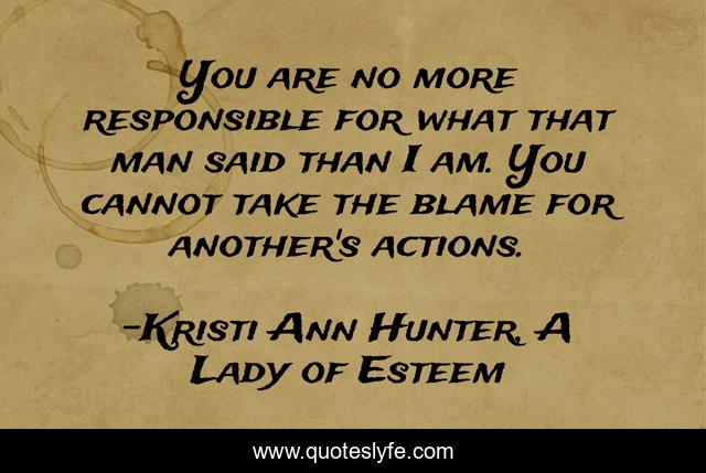 "Kristi Ann Hunter, A Lady of Esteem Quotes." Quoteslyfe.com, 2025. Sat. 06 Dec. 2025. <https://www.quoteslyfe.com/quote/You-are-no-more-responsible-for-what-200830>.
