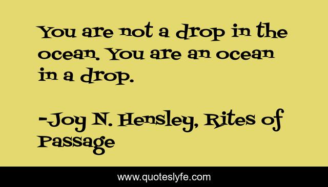 This page presents the quote "You are not a drop in the ocean. You are an ocean in a drop.". Author of this quote is Joy N. Hensley, Rites of Passage. .