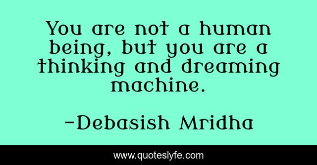 This page presents the quote "You are not a human being, but you are a thinking and dreaming machine.". Author of this quote is Debasish Mridha. This quote is about philosophy, debasish-mridha, quotes, inspirational, enthusiasm, human-being, debasish-mridha-m-d, dreams, thinking-and-dreaming-machine,.