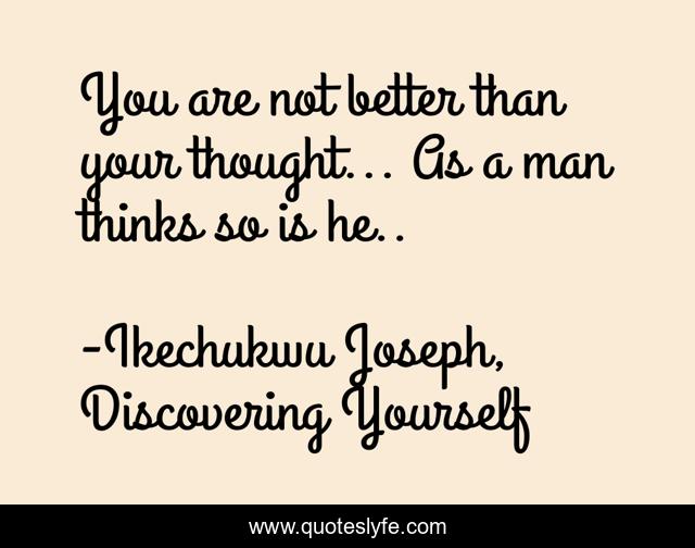 This page presents the quote "You are not better than your thought... As a man thinks so is he..". Author of this quote is Ikechukwu Joseph, Discovering Yourself. This quote is about christian, self-improvement,.