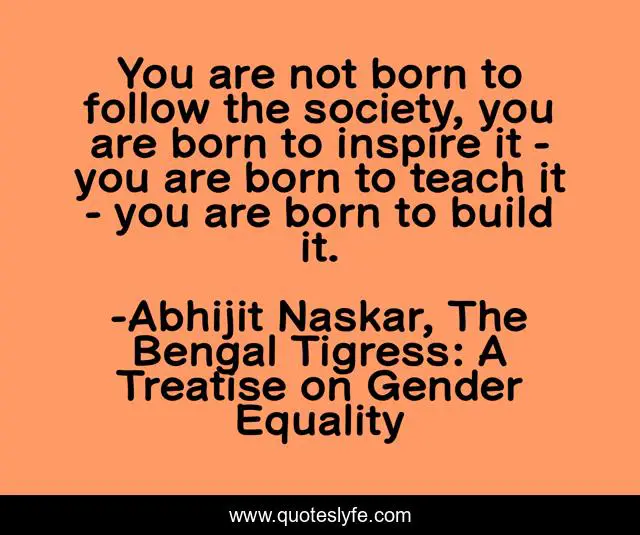 "Abhijit Naskar, The Bengal Tigress: A Treatise on Gender Equality Quotes." Quoteslyfe.com, 2025. Mon. 15 Dec. 2025. <https://www.quoteslyfe.com/quote/You-are-not-born-to-follow-the-32825>.