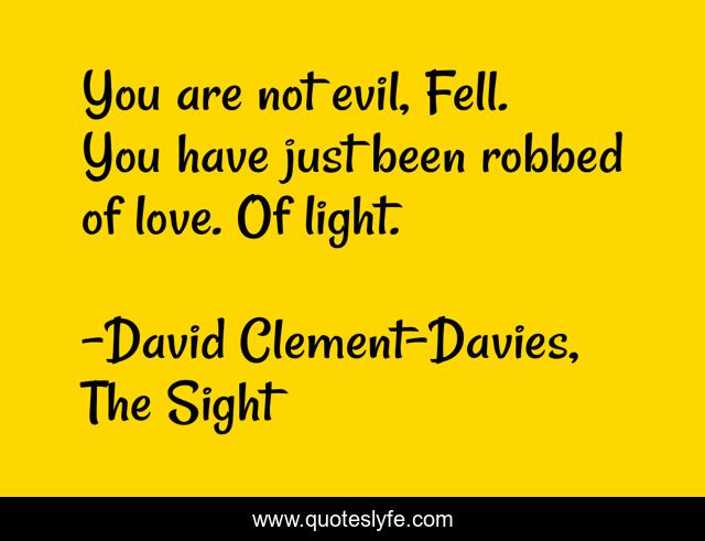 This page presents the quote "You are not evil, Fell. You have just been robbed of love. Of light.". Author of this quote is David Clement-Davies, The Sight. This quote is about wolves, love, evil, affection,.
