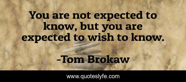 This page presents the quote "You are not expected to know, but you are expected to wish to know.". Author of this quote is Tom Brokaw. .